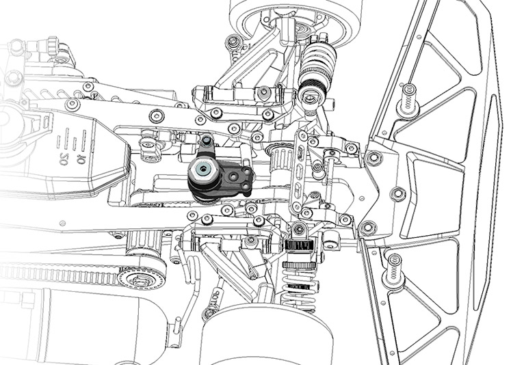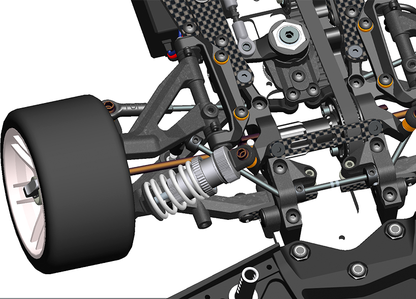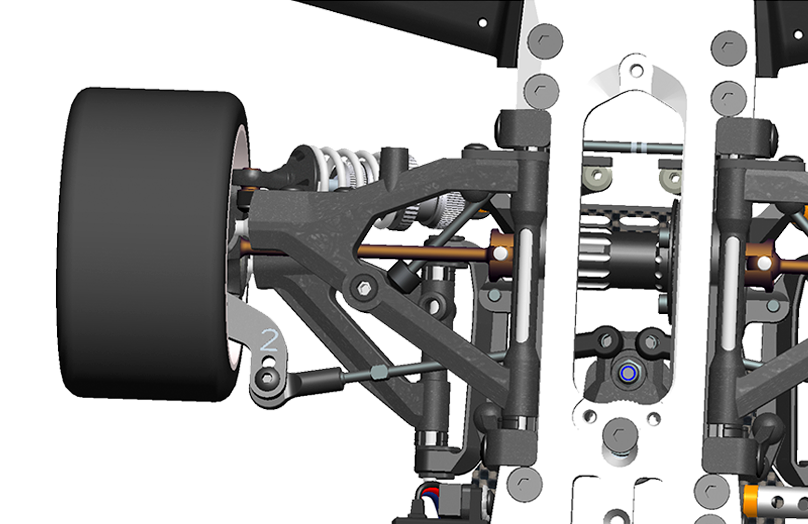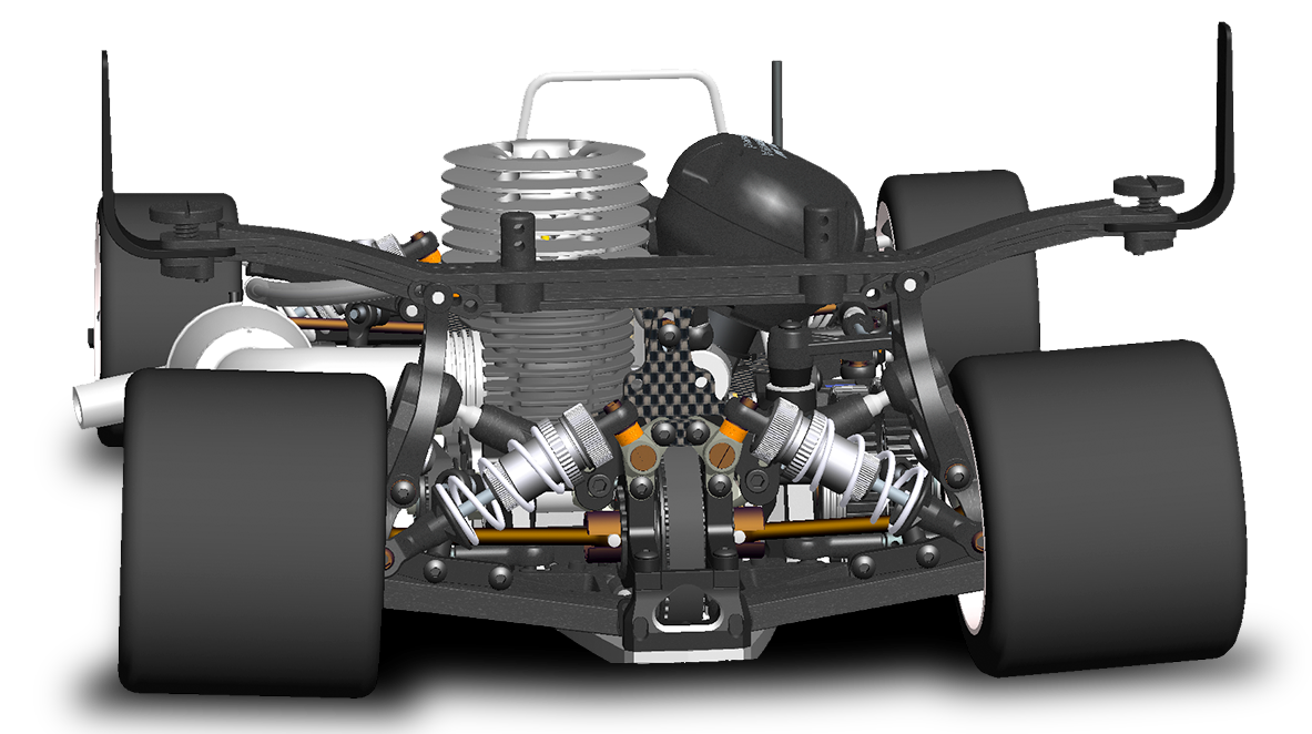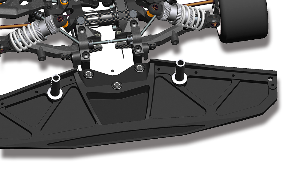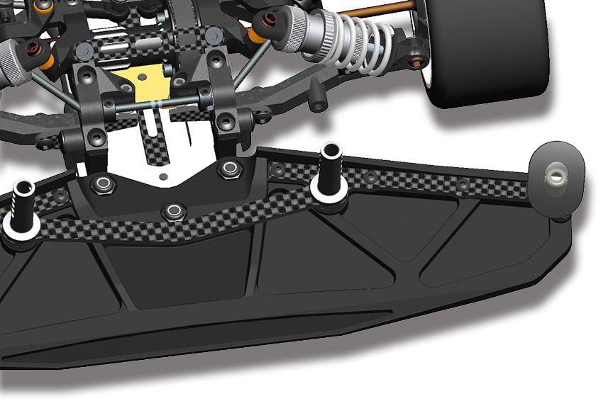 A new setup possibilities are the right and left side stiffeners which connect the rear end to the radio plate mounts. They create more longitudinal, but also more torsional stiffness